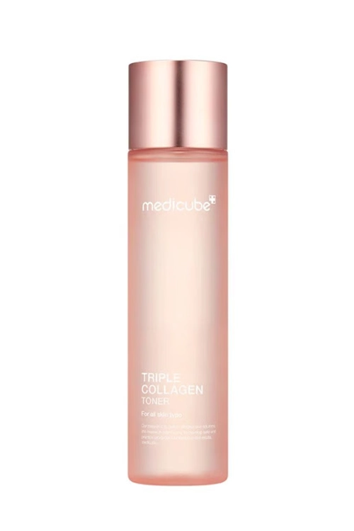 El Triple Collagen Toner 4.0 de Medicube combina tres tipos de colágeno (hidrolizado, atelo y soluble) para hidratar profundamente, mejorar la firmeza y revitalizar la piel cansada.
